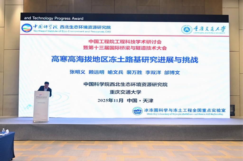 赖远明校长团队在平行论坛上做了“高寒高海拔地区冻土路基研究进展与挑战”的学术报告。作为平行论坛主席,赖远明校长做了引导性主题发言,并为大会报告的专家颁授了报告证书。