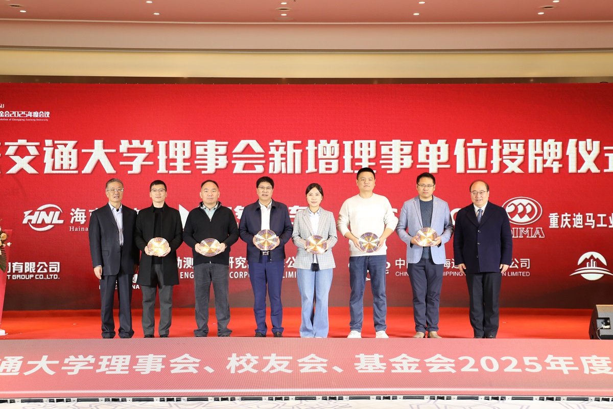 2025年,在全体理事、校友及合作单位的鼎力支持下,新一届理事会以“服务学校发展、凝聚社会力量、助力产学融合”为使命,砥砺前行、笃行致远,围绕重大工程、重大项目、未来交通等领域,开展调研交流,深化创新合作,持续拓展产学研合作层级,取得丰硕成果。为进一步扩大理事会“智囊团”队伍,邀请海南物流集团有限公司等9家合作单位为新增理事单位。重庆交通大学党委书记、理事会理事长宫辉,理事会原理事长、国家铁路局原党组成员、中国交通运输协会副会长钟华为海南物流集团、圭目机器人有限公司、中国远洋海运、中国电建成都勘测设计院、深圳城市交通规划设计研究中心、广西北投、西藏建工建材集团、江西交通科学研究院、庆铃集团、重庆迪马工业的新增理事单位代表颁发聘书。