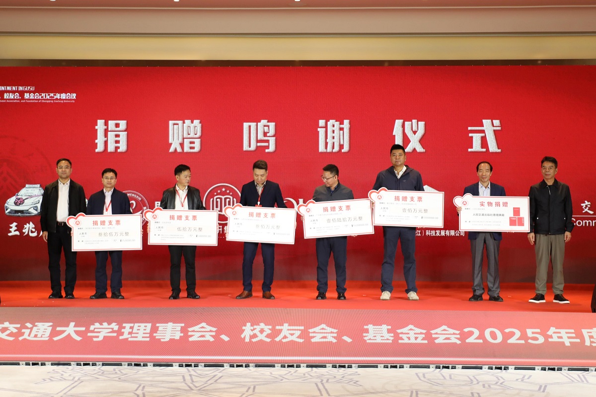 2025年,学校收到山西中研教育科技有限公司捐赠价值300万元的电脑、服务器设备,共建“重庆交通大学综合考试服务基地”;广州南方测绘科技股份有限公司捐赠价值160万元的三套仿真实验系统;王兆启校友捐赠价值50万元的上汽Marvel R智能网联新能源汽车;重交智安(浙江)科技发展有限公司捐赠价值100万元的重庆交通大学终身教育平台;深圳顺丰泰森控股(集团)有限公司捐赠35万元定向用于现代化物流信息化人才培养;人民交通出版社捐赠了承载公路历史与“两路”精神的图书,为师生提供丰厚学术滋养与价值引领,筑牢交通创新人才的培养根基。学校对本年度部分捐赠单位和个人进行鸣谢!