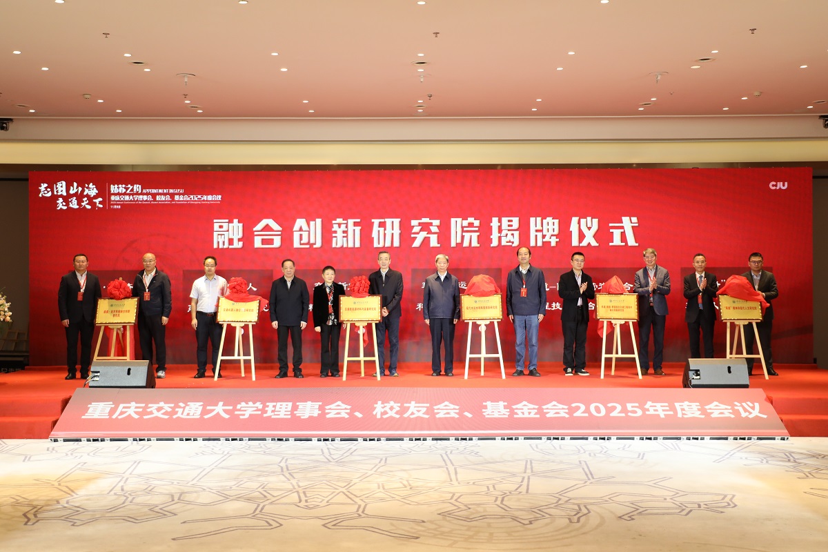 学校积极面向未来交通前沿技术发展和新交通技术需求,锚定“区别传统原始创新、提前切入未来布局、介入未来交通场景、迅速培育新兴方向”的建设目标,以提前布局未来交通领域科技创新为目标,以突破学科交叉为抓手,筹建成立现代水利水运、交通新能源材料与装备、交通机器人、“两路”精神与现代人文、通道经济产业、轨道隧道管道综合交通工程等六大融合创新研究院,进一步完善了学校服务未来交通领域的创新平台布局。国家发改委农经司原司长吴晓,交通运输部原总工程师兼水运局局长李天碧,理事会副理事长、校友会副会长、基金会副理事长、中国华西工程设计建设有限公司董事长周华,理事会副理事长、重庆市交通委员会原主任乔墩,理事会副理事长、广西交投集团原董事长周文,理事会副理事长、福建省交通运输厅原党组成员、总工程师寇军共同为学校融合创新研究院揭牌。这不仅标志着学校在未来交通前沿领域的战略布局迈出关键一步,更彰显了我们以学科交叉融合培育创新动能、以产学研协同赋能产业发展的坚定决心。
